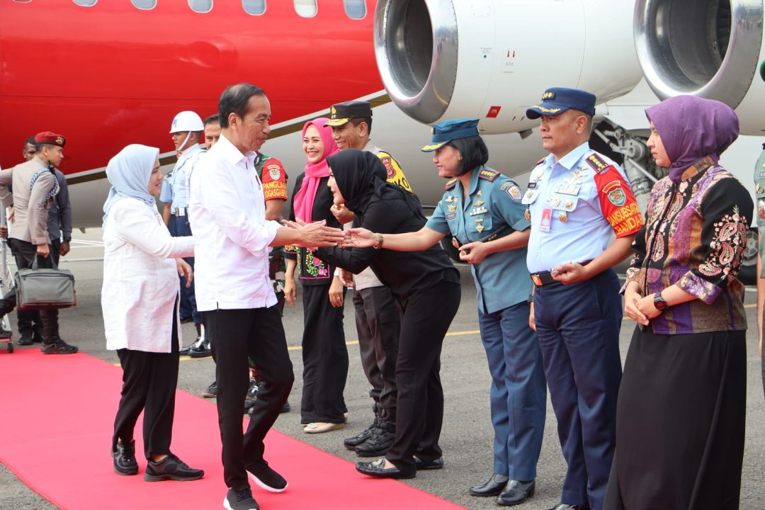 SD, TNI AL, Bandung,- Komandan Lanal Bandung Kolonel Laut (KH/W) Dr. Renny Setiowati, S.T., M.Sc., M.Tr.Hanla., menyambut kedatangan Presiden Republik Indonesia Joko Widodo beserta Ibu Iriana Jokowi menggunakan pesawat Kepresidenan BBJ-2/A- 001, bertempat di VIP Room Sompil Basuki Lanud Husein Sastranegara, Kamis (29/08/2024).