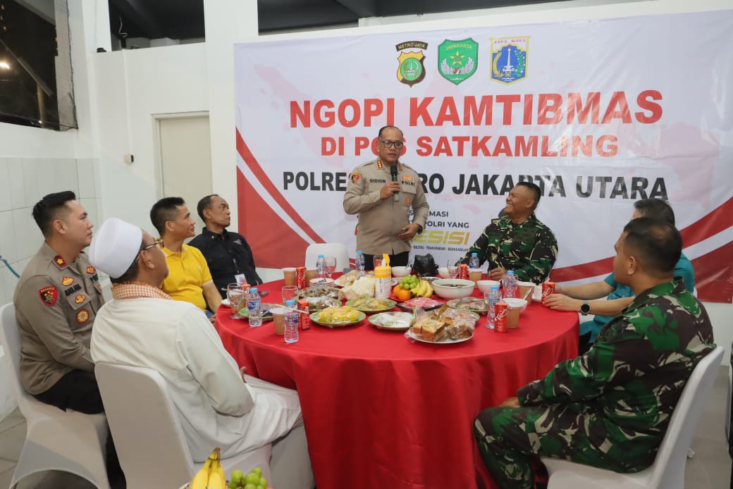 Kegiatan malam Ini bertajuk ‘Ngopi Kamtibmas’ menyasar pos Kamling di wilayah Jakarta Utara dengan melibatkan Forkopimko.