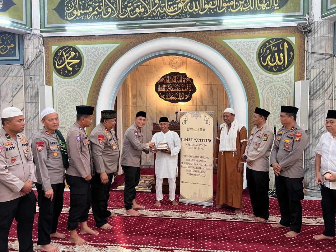 SD, Jakarta – Wadir Binmas Polda Metro Jaya AKBP Wadi Sa’bani memimpin kegiatan Jumat Keliling di Masjid At Taqwa Jl Sakti IV No 8 Rt 08 Rw 09 Kel Kemanggisan., Jakarta Barat Jum’at (9/8/24)