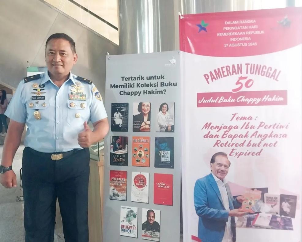 SD, Jakarta – Inspirasi dari Marsekal TNI Purn. Cheppy Hakim, mantan Kasau di era Presiden Megawati Soekarno Puteri menjadi kebanggaan generasi TNI AU di generasi berikutnya. Seperti apa yang dituturkan Marsekal Pertama Fajar Adrianto usai pembukaan pameran 50 judul buku karya Marsekal TNI Purn. Cheppy Hakim.