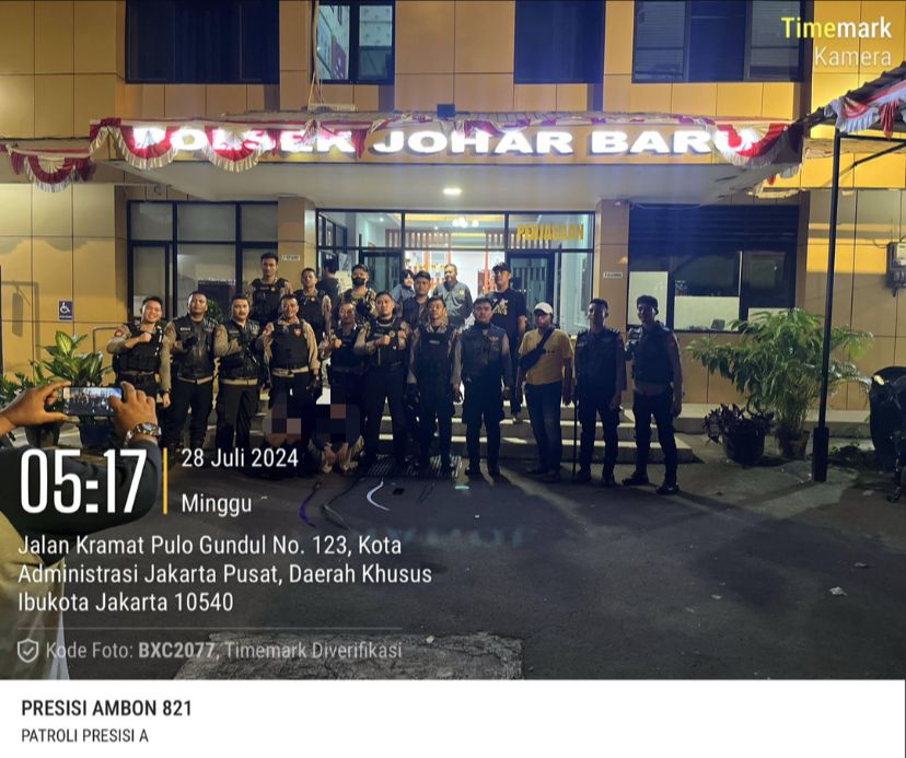 SD, Jakarta Pusat – Tim Patroli Perintis Presisi Satuan Samapta Polres Metro Jakarta Pusat bersama Polsek Johar Baru dan 3 Pilar berhasil mengamankan 2 remaja yang diduga hendak melakukan tawuran di Jl. Kramat Jaya Baru RT 01/10 Kelurahan Johar Baru Kecamatan Johar Baru Jakarta Pusat, Minggu (28-7-2024) sekitar pukul 04.00 WIB.
