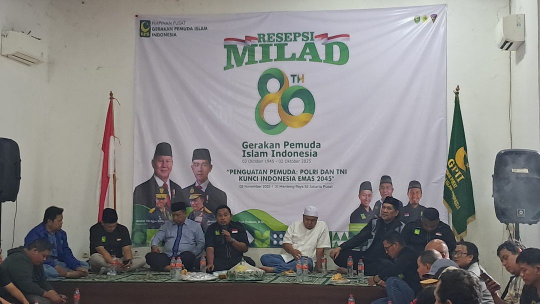 Suarademokrasi.co.id, Jakarta – Gerakan Pemuda Islam Indonesia (GPII) selenggarakan “RESEPSI MILAD KE-80 GPII”, dengan mengambil tema “Penguatan Pemuda: Polri dan TNI Kunci Indonesia Emas 2045” di Kantor DPP GPII Jalan Menteng Raya No.58 Jakarta Pusat, (03/11/25).