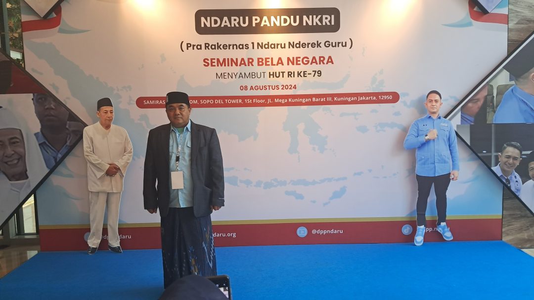 SD, Jakarta – Ketua DPW Ndaru Jawa Barat H. Agus Masyum menghadiri Pra Rakernas 1 Ndaru Nderek Guru dan seminar bela negara menyambut HUT RI 79 di Gedung Sopo Del Tower Jakarta, Kamis (8/8/24).