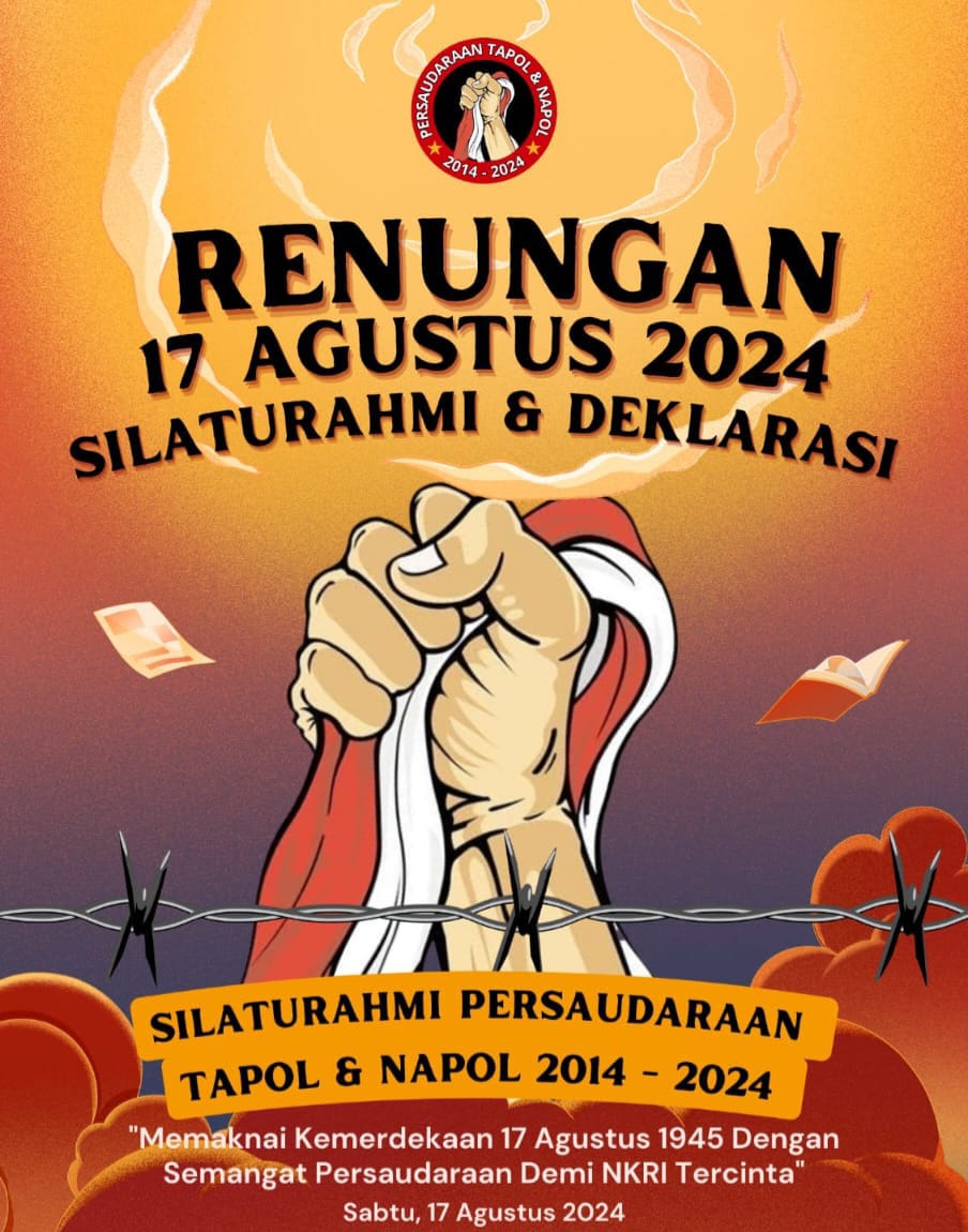 JAKARTA, Suarademokrasi.co.id – Menyambut hari kemerdekaan bangsa Indonesia yang ke 79, para mantan Tapol dan Napol di era kepemimpinan Jokowi mendeklarasikan terbentuknya Persaudaraan Tapol dan Napol sebagai wadah perjuangan rakyat.