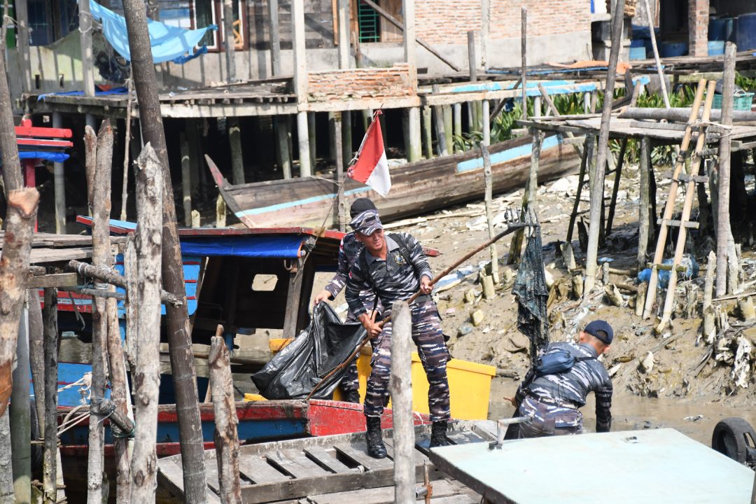 SD, TNI AL, Tanjung Balai,- Dalam rangka menyambut HUT TNI Angkatan Laut Ke-79 Taun 2024, Lanal Tanjung Balai Asahan menggelar kegiatan Bersih- Bersih Sungai di Desa Bagan Asahan, Kecamatan Tanjung Balai, Kabupaten Asahan, Senin (2/09/2024).