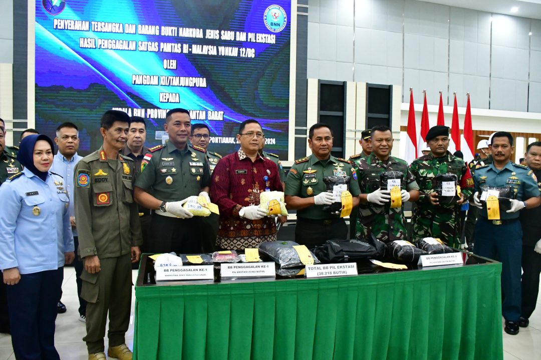 Di waktu yang sama Pangdam XII/Tpr Mayjen TNI Iwan Setiawan, menyampaikan bahwa Penyerahan 1 orang tersangka dan barang bukti narkotika jenis sabu maupun pil ekstasi dan pil jenis lainnya kepada Kepala BNNP Kalbar merupakan kerja keras kita bersama dan sekaligus ingin membuktikan kepada masyarakat bahwa kita tidak akan pernah lelah dan pantang menyerah untuk melawan narkotika.