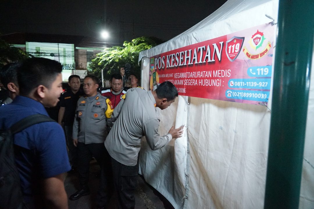 SD, Bekasi – Kapolres Metro Bekasi Kombes Pol. Twedi Aditya Bennyahdi bersama pejabat utama Polres Metro Bekasi melakukan monitoring langsung di pos pengamanan libur Natal dan Tahun Baru (Nataru) yang berlokasi di Gedung Juang Tambun, Jl. Sultan Hasanudin, Desa Mekarsari, Tambun Selatan, Kabupaten Bekasi, Sabtu (21/12/2024) malam.