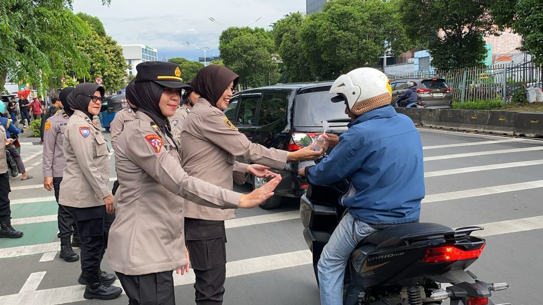 Sebanyak 150 paket takjil dan 150 botol air mineral dibagikan langsung kepada para pengguna jalan, termasuk pengendara dan pejalan kaki yang melintas.