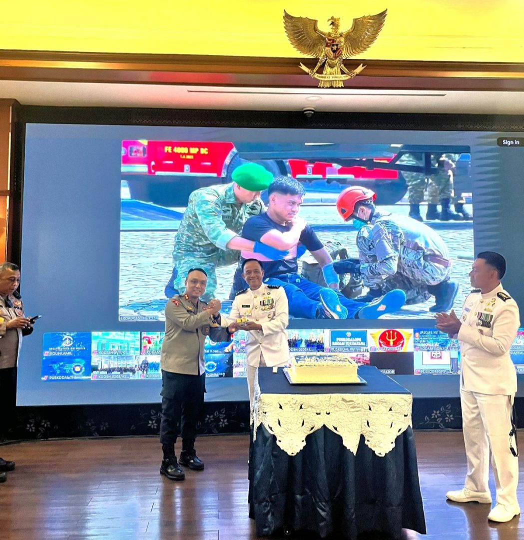 Rombongan Polres Jakarta Utara datang dengan membawa kue ulang tahun dan ucapan selamat, disambut dengan penuh semangat oleh prajurit Kolinlamil. Suasana haru sekaligus hangat mewarnai momen tersebut, menandakan eratnya hubungan sinergi antara TNI dan Polri dalam menjaga keamanan dan kedaulatan bangsa.