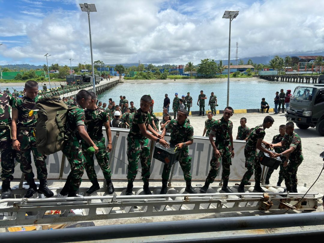 SD, Papua – Berita Kolinlamil TNI AL, 13 November 2024 ——- KRI Teluk Calang-524 yang merupakan unsur KRI di jajaran Kolinlamil, kembali mendapat kepercayaan melakukan tugas operasi laut, dengan memberikan dukungan Angkutan Laut bagi personil yang akan melaksanakan pergeseran pasukan ke wilayah Nabire dan Manokwari. Sebanyak 1300 pasukan yang berasal dari Yonif 804 dan Yonif 805, merupakan Satgas pembentukan batalyon baru PDR (Penyangga Daerah Rawan) di Papua. Pemberangkatan batalyon baru PDR telah dilaksanakan beberapa waktu lalu menggunakan KRI Teluk Calang-524, dimana Yonif 805 bermarkas di Manokwari dan Yonif 804 bermarkas di Nabire.