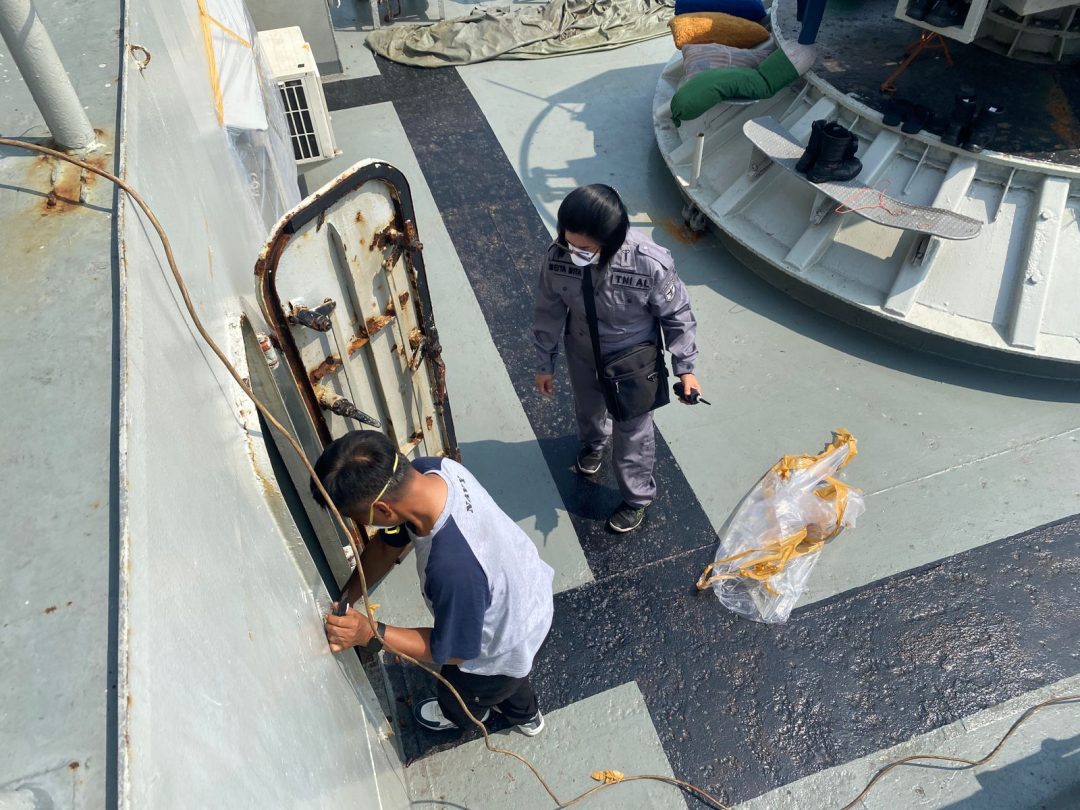 SD, Surabaya – Berita Kolinlamil TNI AL, 25 Oktober 2024 ——- Tim Dinas Kesehatan Komando Lintas Laut Militer (Diskes Kolinlamil) melaksanakan Fumigasi di kapal perang yang berada di bawah pembinaan Satuan Lintas Laut Militer (Satlinlamil) 2 Surabaya, yakni KRI Teluk Lampung-540 (KRI TLP-540) yang saat ini sandar di Dermaga Semampir Surabaya, Kamis (24/10).