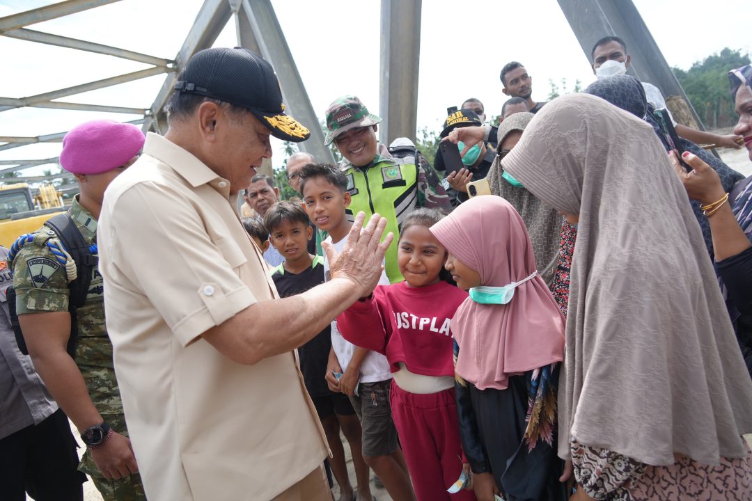 Lokasi terkahir yang dikunjungi Menko Djamari adalah Jembatan Teupin Reudeup yang juga terputus akibat bencana pekan lalu. Hampir sama dengan jembatan sebelumnya, di lokasi ini juga tengah dibangun bailey untuk menjadi penghubung sementara dua sisi jembatan.