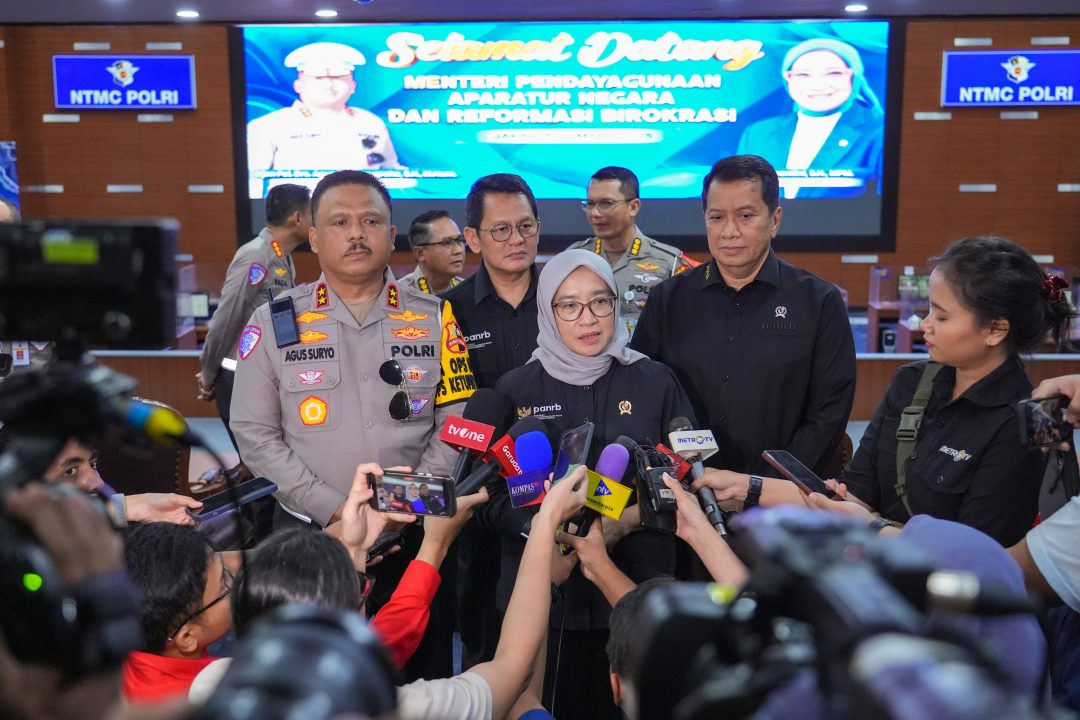 SD, Jakarta – Kepala Korps Lalu Lintas (Kakorlantas) Polri Irjen Pol Drs. Agus Suryonugroho S.H, M.Hum menerima kunjungan MenPAN-RB Rini Widyantini dan Wamen PAN-RB Purwadi Arianto di Gedung NTMC Korlantas Polri, Jakarta.