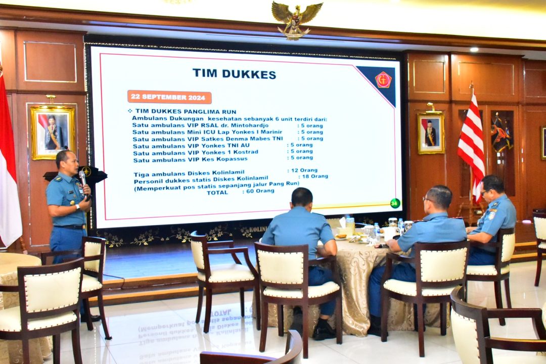 SD, Berita Kolinlamil TNI AL, 26 Agustus 2024 ——- bertempat di Gedung Laut Nusantara Mako Kolinlamil, Tanjung Priok. Panglima Kolinlamil Laksda TNI Hudiarto Krisno Utomo, PSC(j) M.A., M.M.S., CHRMP bersama seluruh Pejabat Utama Kolinlamil dan Kasatker Kolinlamil menerima paparan dari Asisten Komunikasi dan Elektronika (Askomlek) Pangkolinlamil Kolonel Laut (P) Agustinus Djoko Priyanto , S.E., M.Si. terkait Panglima TNI Run Tahun 2024 yang digelar dalam rangka menyambut Hari Ulang Tahun (HUT) Ke-79 TNI Tahun 2024. Panglima TNI Run 2024 kembali hadir dan merupakan event lari tahunan yang dinanti-nantikan ini tidak hanya menjadi wadah untuk berolahraga, tetapi juga sebagai momentum kebersamaan seluruh elemen masyarakat bersama TNI dalam suasana yang penuh semangat kebangsaan. Panglima TNI Run Tahun 2024 akan diselenggarakan pada hari Minggu, 22 September 2024 di Silang Barat Daya, Monas, Jakarta dengan kategori lomba, 5K (Umum-Pelajar-Master) dan 10K (Umum-TNI/Polri-Master). (Dispen Kolinlamil)