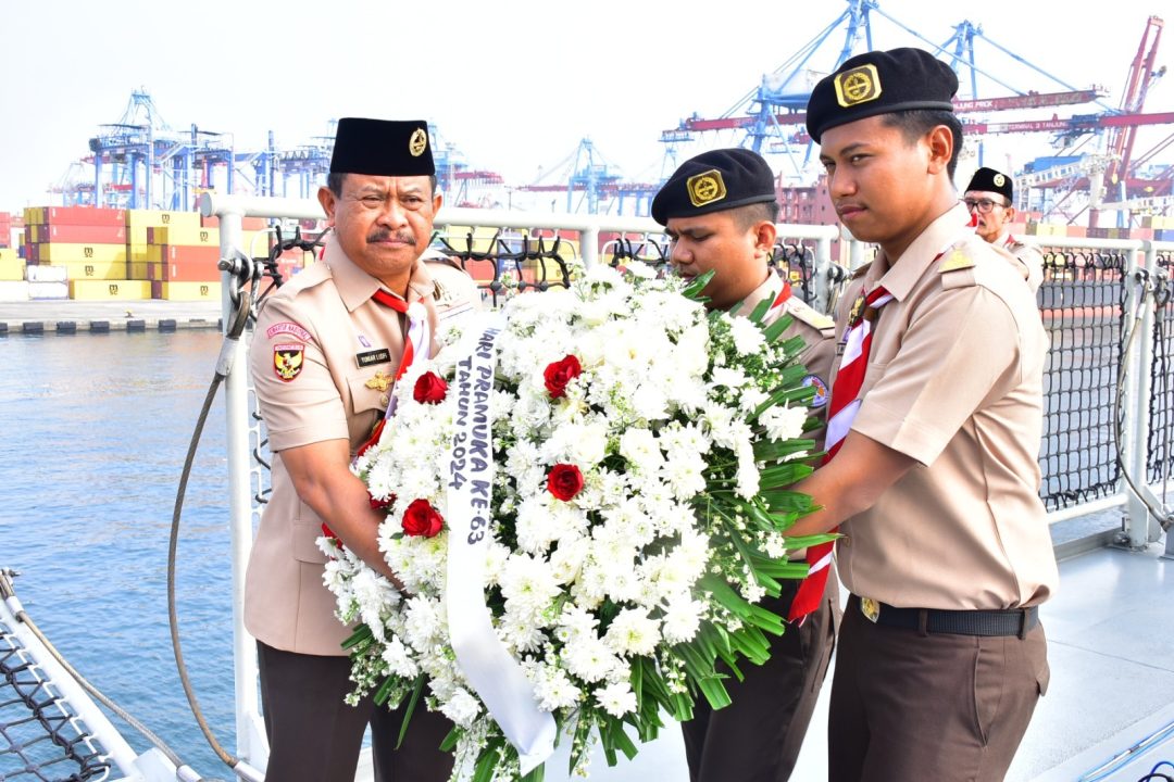 SD, Jakarta – Berita Kolinlamil TNI AL, 12 Agustus 2024 ——- Dalam rangka peringatan Hari Pramuka yang ke-63 tahun 2024, Kwartir Nasional (Kwarnas) Gerakan Pramuka melaksanakan upacara tabur bunga di perairan teluk Jakarta, pada hari Minggu (11/8).