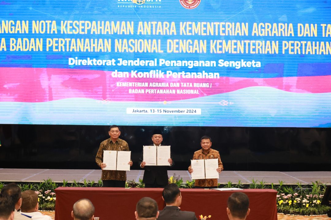 Jalinan kerja sama tersebut diresmikan dengan penandatanganan _Memorandum of Understanding_ (MoU) oleh Menteri ATR/Kepala BPN, Nusron Wahid dengan Menteri Pertahanan, Sjafrie Sjamsoeddin dan Kepala BIN, Muhammad Herindra.