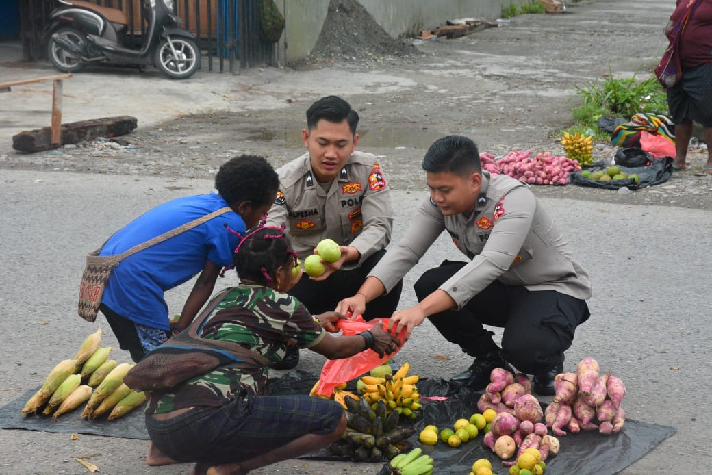 Sementara itu, salah satu pedagang buah lokal, Mama Maria Wenda, mengaku senang dengan kehadiran personel kepolisian yang turut mendukung usaha kecil mereka.