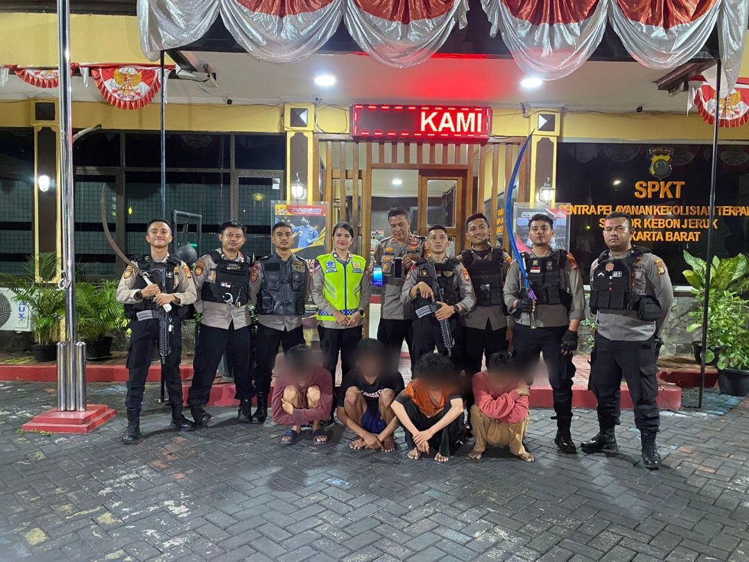 SD, Jakarta Barat – Tim Patroli Perintis Presisi Polres Metro Jakarta Barat berhasil mengamankan empat remaja yang diduga hendak melakukan aksi tawuran pada Minggu, 18/8/2024, sekitar pukul 04.00 WIB pagi.