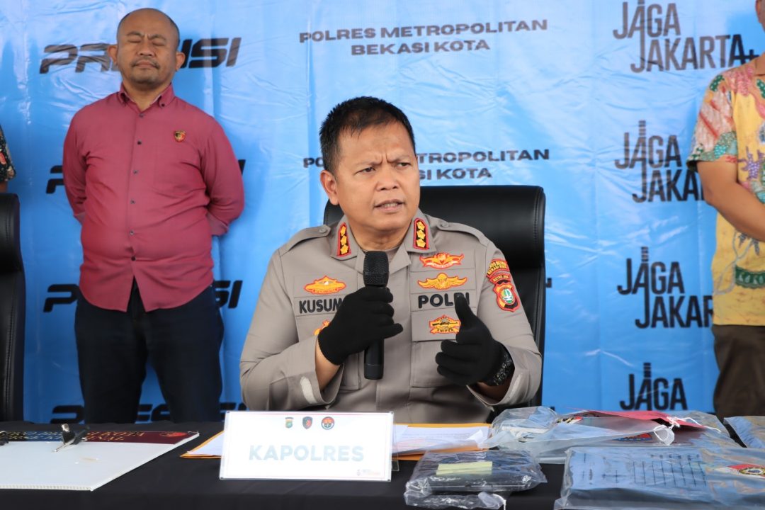 Suarademokrasi, Bekasi – Polres Metro Bekasi Kota berhasil mengungkap kasus pencurian dengan pemberatan yang menyasar Rumah Quran Ummu Khadijah di Jatimekar, Jatiasih. Rilis pengungkapan kasus ini dipimpin langsung oleh Kapolres Kombes Pol Kusumo Wahyu Bintoro S.H S.I.K M.H, didampingi Wakapolres AKBP Davis Busin Siswara, Kasat Reskrim Kompol Dr. Andi Muhammad Iqbal dan Kasi Humas AKP Suparyono di Lobi Mapores Metro Bekasi Kota pada Jumat (27/3/2026).