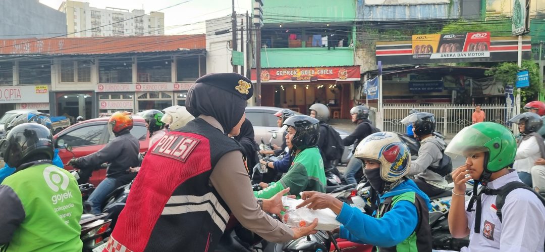 Polsek Ciputat Timur Bagikan Takjil ke Pengendara dan Warga di Jalanan