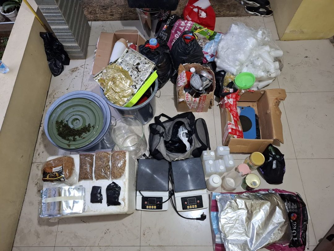 Pengembangan kasus kemudian mengarah ke DY yang berada di sebuah rumah kontrakan di Jalan Majelis Kalimulya, Depok. Di lokasi tersebut, tim menemukan berbagai barang bukti, seperti lima kilogram bahan baku bubuk sintetis, tiga bungkus tembakau mentah, dan perlengkapan produksi lainnya, termasuk cerobong hexos dan timbangan elektrik. DY juga mengungkap keterlibatan MS sebagai pembuat utama bibit sintetis.