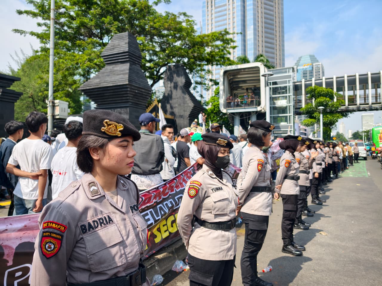 Kabidhumas Polda Metro Jaya Kombes Budi Hermanto mengatakan keterlibatan Polwan dalam kegiatan ini merupakan wujud pelayanan humanis Polri dalam mengawal setiap penyampaian pendapat di muka umum. “Kami hadir untuk memberikan pelayanan dan pengamanan secara humanis agar kegiatan penyampaian pendapat berjalan aman, tertib, dan kondusif,” kata Kombes Budi Hermanto.