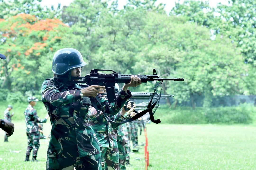 Latihan menembak dilaksanakan di lapangan tembak Jusman Poeger Pasmar 1 Marinir, Cilandak, Jakarta Selatan, Kamis (28/11), merupakan
