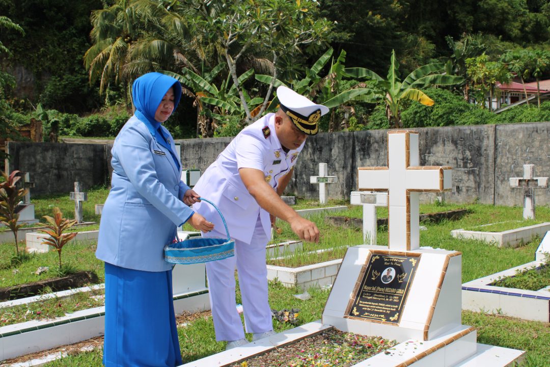 Ziarah dan Tabur Bunga dipimpin langsung oleh Danlanal Nias Kolonel Laut (P) Wishnu Ardiansyah, S.E., M.Tr.Hanla., M.M., CHRMP., didampingi Ketua Jalasenastri Cabang 5 Korcab II DJA 1 Ny. Indria Wishnu Ardiansyah, beserta Perwira Staf dan Anggota Jalasenastri.