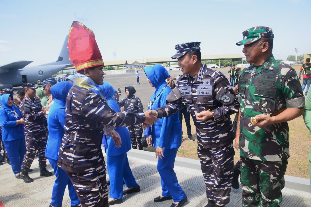 SD, Sulsel. Berita Kolinlamil TNI AL, 9 Agustus 2024 ——- Panglima Kolinlamil Laksda TNI Hudiarto Krisno Utomo, PSC(j) M.A., M.M.S., CHRMP bersama Ketua Gabungan Jalasenastri Kolinlamil Ny. Irna Krisno Utomo bersama dengan pejabat TNI-Polri serta Forkopimda Kota Makassar menyambut kedatangan Kepala Staf Angkatan Laut (Kasal) Laksamana TNI Muhammad Ali, S.E., M.M., M.Tr.Opsla., didampingi Ketua Umum Jalasenastri Ny. Fera Muhammad Ali di Base Ops Sultan Hasanuddin Makassar, Sulawesi Selatan pada hari Jumat (9/8).