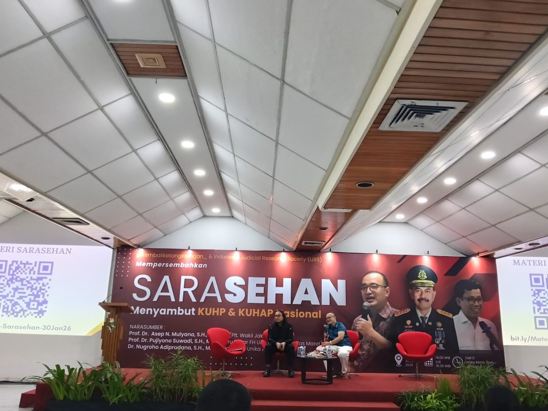 Suarademokrasi, Jakarta — Pemberlakuan Kitab Undang-Undang Hukum Pidana (KUHP) dan Kitab Undang-Undang Hukum Acara Pidana (KUHAP) Nasional menandai babak baru sistem peradilan pidana Indonesia. Menyikapi momentum penting tersebut, Fakultas Hukum Universitas Katolik Indonesia Atma Jaya menyelenggarakan Sarasehan Nasional bertema “Menata Ulang Sistem Peradilan Pidana dalam Bingkai KUHP dan KUHAP Nasional” di Hall D Universitas Atma Jaya, Jakarta, Jumat (30/1/2026).