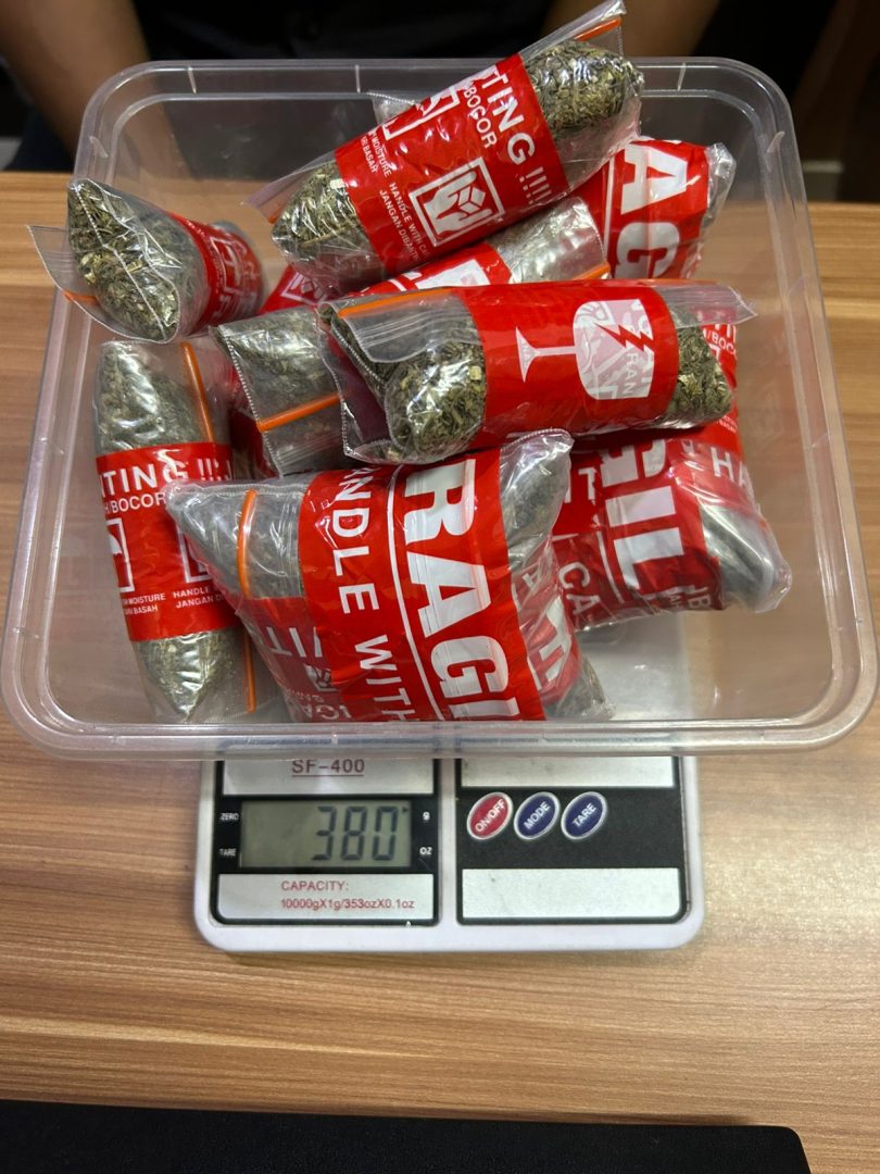 – Beberapa paket ganja dalam berbagai kemasan dengan total bruto yang signifikan, antara lain: 9 plastik klip sedang berisi ganja bruto 380 gram; 4 plastik klip sedang berisi ganja bruto 161 gram; 5 plastik klip berisi ganja bruto 13 gram; serta 1 plastik hitam besar berisi ganja bruto 899 gram;