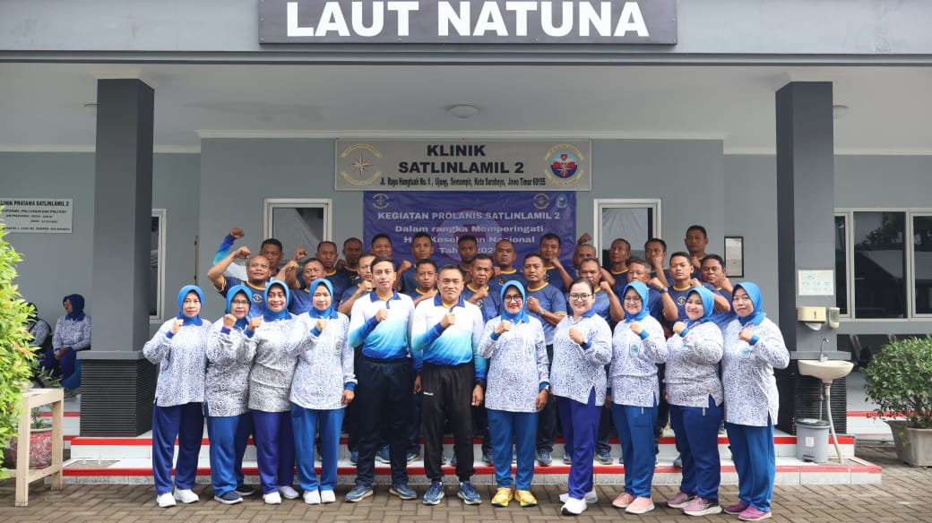 Suarademokrasi.co.id, Jakarta, Berita Kolinlamil TNI AL, 12 November 2025 ——- Dalam rangka memperingati Hari Kesehatan Nasional (HKN) 2025, Satuan Lintas Laut Militer 2 (Satlinlamil 2) Surabaya menggelar kegiatan Jalan Sehat dan Senam Bersama di Markas Komando Satlinlamil 2, Rabu (12/11). Kegiatan ini diikuti oleh seluruh prajurit dan ASN Satlinlamil 2, peserta Program Pengelolaan Penyakit Kronis (Prolanis), serta Ibu-Ibu Jalasenastri Cabang 3 Gabungan Jalasenastri Kolinlamil.