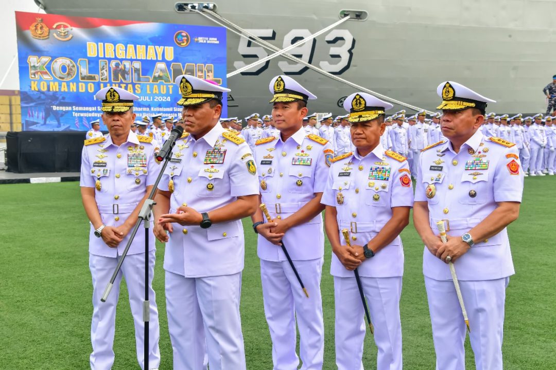 SD, Jakarta – Berita Kolinlamil TNI AL, 2 Juli 2024 ——- “Dengan Semangat Satya Wira Jala Dharma, Kolinlamil Siap Mendukung Terwujudnya TNI AL Yang Prima Untuk Indonesia Maju,” Tema tersebut selaras dengan semangat pembangunan kekuatan TNI Angkatan Laut yang sedang kita gelorakan”, ucap bangga Kepala Staf Angkatan Laut (Kasal) Laksamana TNI Dr. Muhammad Ali, S.E., M.M., M.Tr.Opsla. dalam amanatnya di hadapan seluruh Prajurit dan PNS Kolinlamil serta tamu undangan yang hadir pada Upacara Peringatan HUT Ke-63 Kolinlamil, yang dihelat pada hari Selasa (2/7) di Lapangan Moeljono Silam Mako Kolinlamil Tanjung Priok, Jakarta Utara.