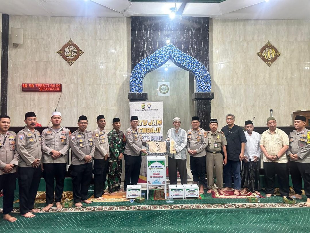 SD, Jakarta – Polda Metro Jaya menggelar program ‘Satu Jam Mengaji Bersama Polisi’ bertempat di Masjid Al Istikharah Jln. Kernolong Dalam IV No. 41 Kel. Kenari Kec. Senen Jakarta Pusat. Program ini digelar untuk mengajak masyarakat memakmurkan masjid dengan tema “Harkamtibmas Berbasis Kemakmuran Masjid”.