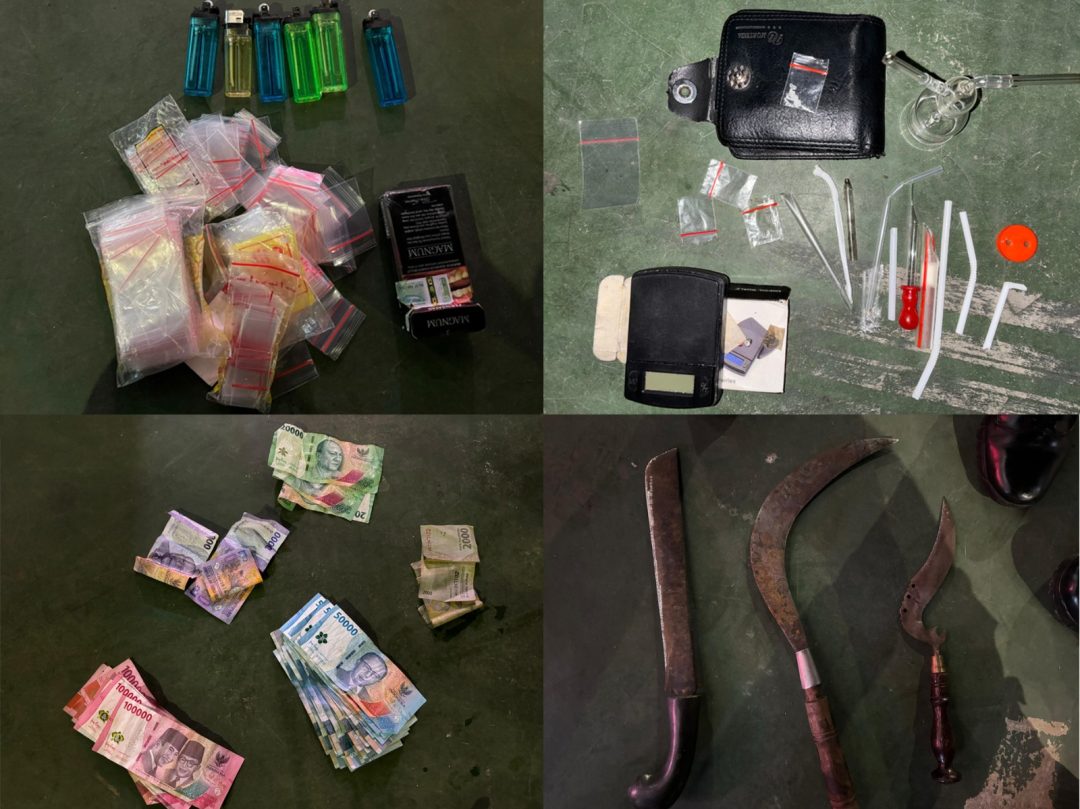Selanjutnya Tim melakukan pengembangan dan menuju rumah yang diduga bandar sabu tersebut di Daerah Pondok Kopi Jakarta Timur, dengan sigap Tim pun langsung melakukan penggeledahan dan berhasil menemukan satu klip plastik berisi sabu, alat timbang, alat hisap sabu, ratusan plastik klip kosong dan ditemukan juga tiga buah senjata tajam serta uang tunai hasil penjualan sabu.