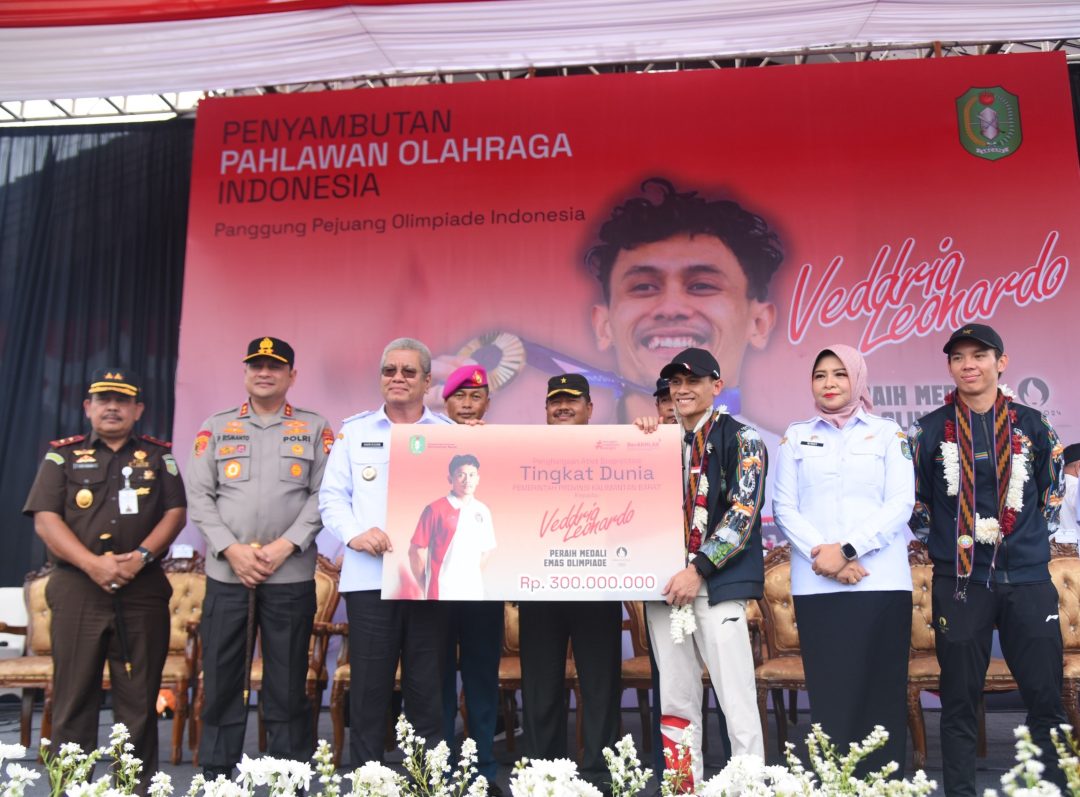SD, Pontianak, TNI-Al – Lantamal XII, Bertempat di Pemda VVIP Bandara Supadio, bersama pejabat Forkopimda terkait, Wadan Lantamal XII Kolonel Marinir Qomarudin mengikuti penyambutan kedatangan Veddriq Leonardo, atlet panjat tebing asal Pontianak peraih Medali Emas Olimpiade Paris 2024 saat tiba di Pontianak. Jl.Ahmad Yani II Pontianak Kalbar. Rabu (21/8/2024).