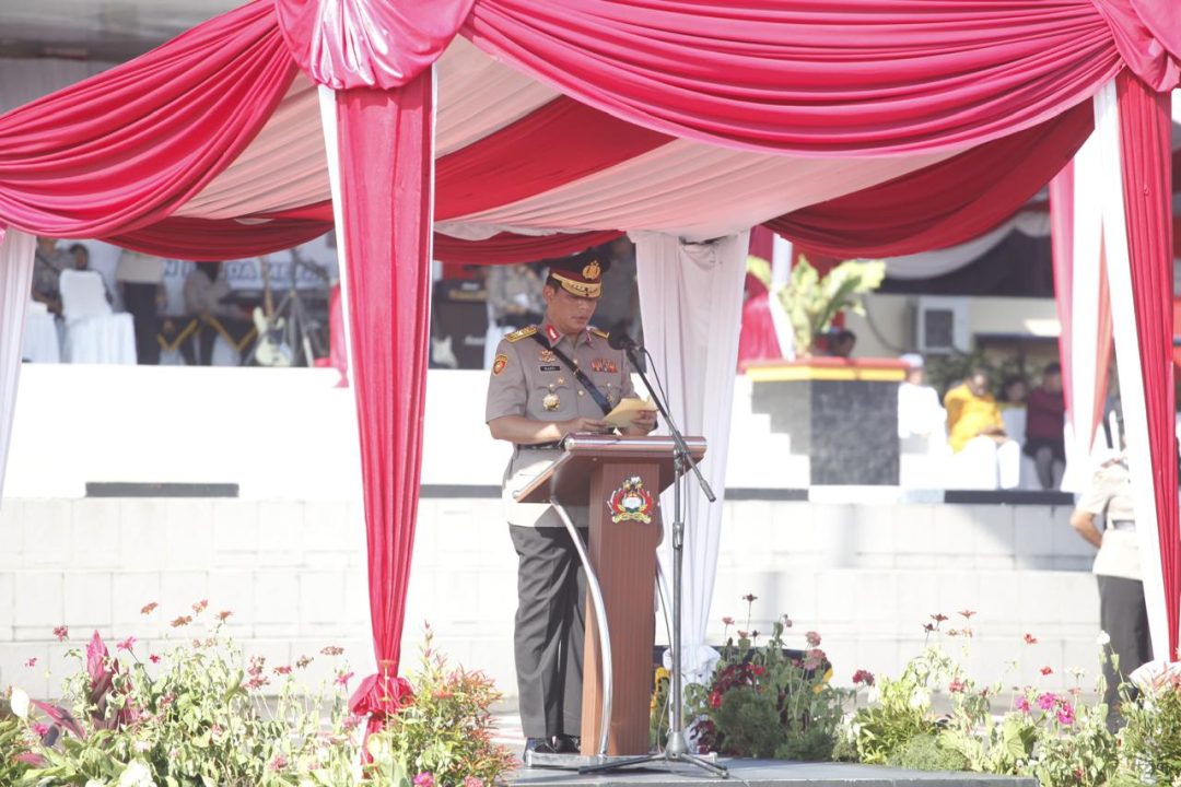 “Tekad dan niat yang terkandung dalam tema tidak akan terwujud jika saudara sekalian setelah berdinas abai dan melupakan atas sejatinya yang menjadi tugas dan fungsi saudara sebagai Bhayangkara yaitu memelihara Kamtibmas, memberikan perlindungan, pengayoman, dan pelayanan kepada masyarakat serta menegakkan hukum untuk menciptakan rasa aman dan keadilan di masyarakat.” Ucapnya.